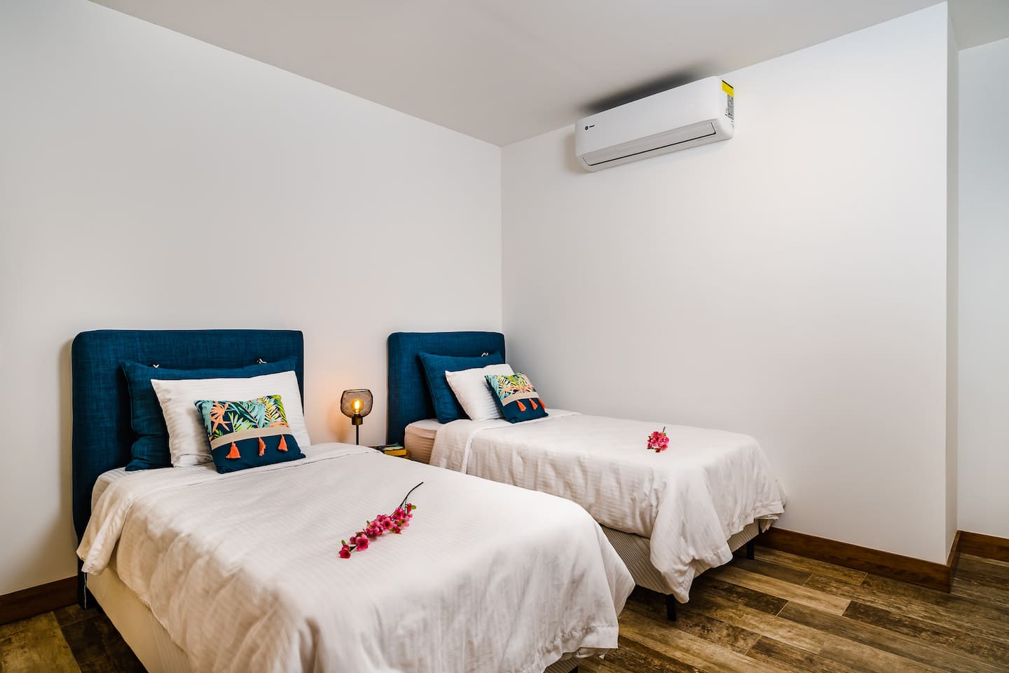 Hang out evenings with family in the TV room or hide away in the over-sized primary bedroom, king-size bed, with large ensuite bathroom, walk-in closet and TV and its own private terrace with lounging area. Bedroom two provides a queen-sized bed with a large terrace and bedroom three provides two twin beds.