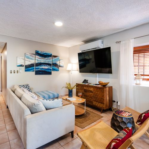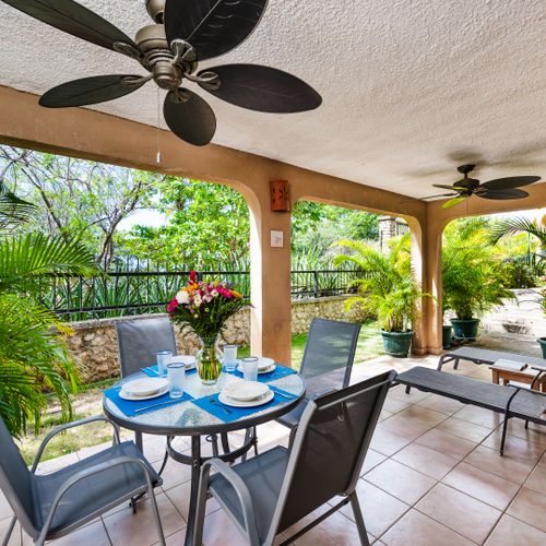 Awesome unit, was a comfortable size for a family of 4. Kitchen was well stocked. Bathrooms were clean, plenty of towels, and hot water. Washer and dryer were a huge plus. Would suggest putting a safety strip on the upstairs area that steps down....where you least expect. RPM was awesome, place was beautifully maintained, pool was very refreshing, and we particularly enjoyed that it was not in the sun in the afternoon as we needed some respite after swimming on the beach, security and gardener both brought us a couple of delicious mangos. We will be going back, hopefully soon!!!!