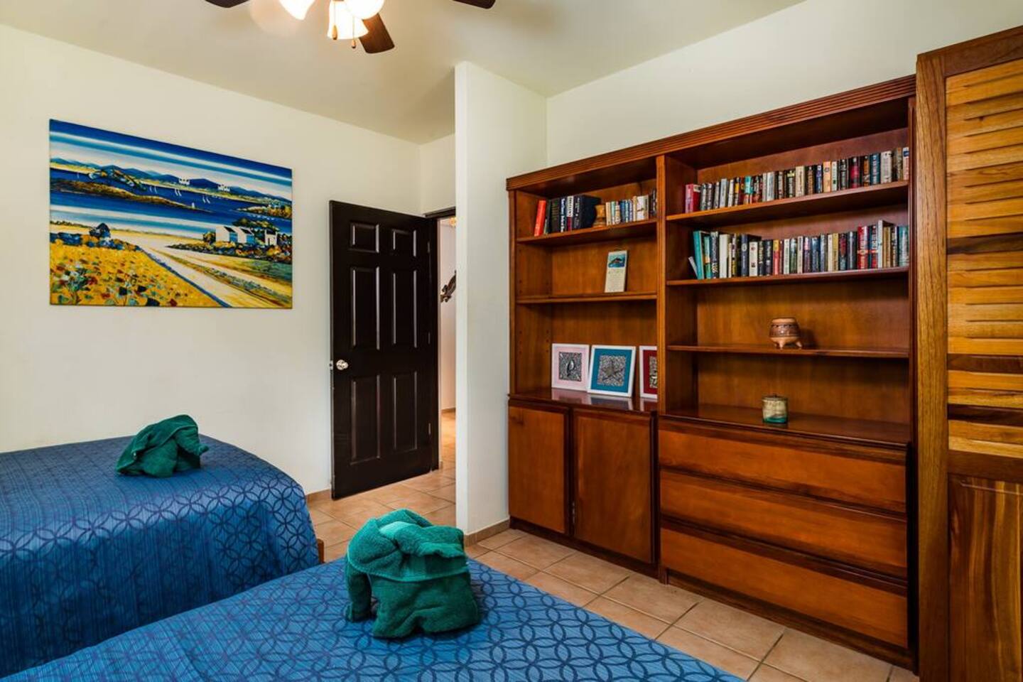On the second floor, you will find both rooms, the master with a King bed and the second room with 2 twin beds.