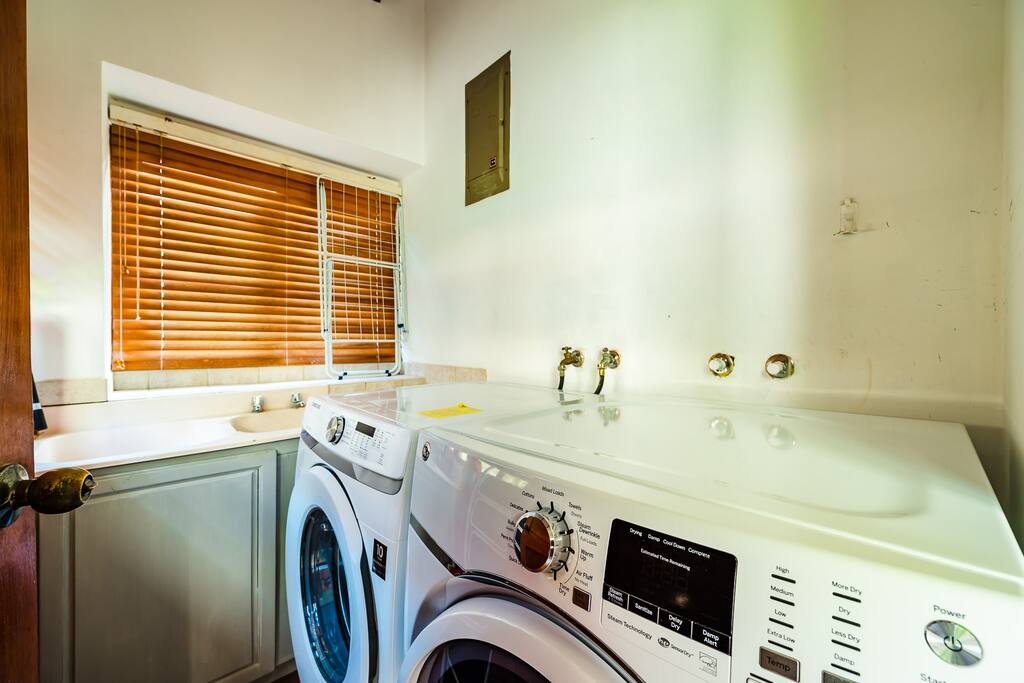 There are 2 full bathrooms in the unit and laundry room with a dryer and washer