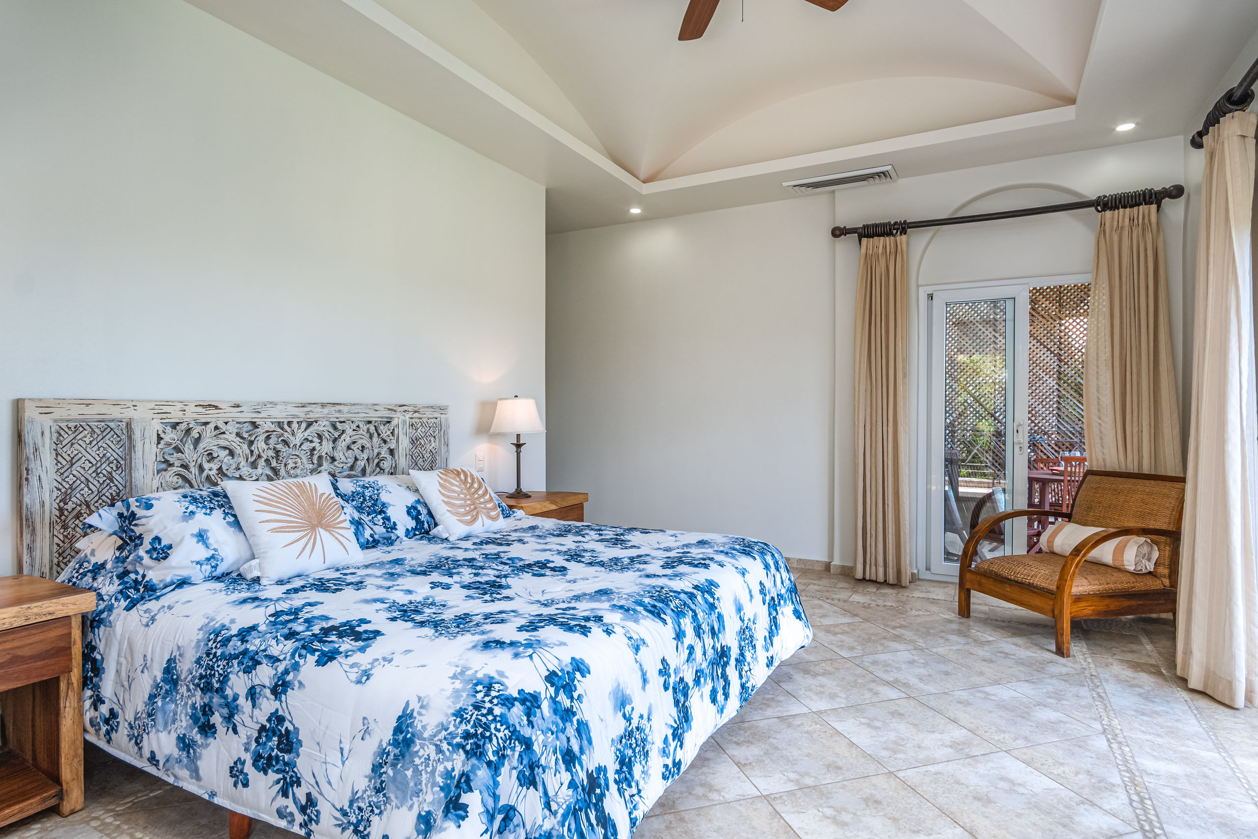 The master bedroom features a luxurious California king-sized bed, cable tv, sliding glass door to private balcony with an ocean view of both Tamarindo and Playa Grande. The second bedroom has a queen-sized bed, its own ensuite bathroom and small balcony. The third bedroom has a double bed and one single bed, along with its own ensuite bathroom, walk in closet and small balcony.