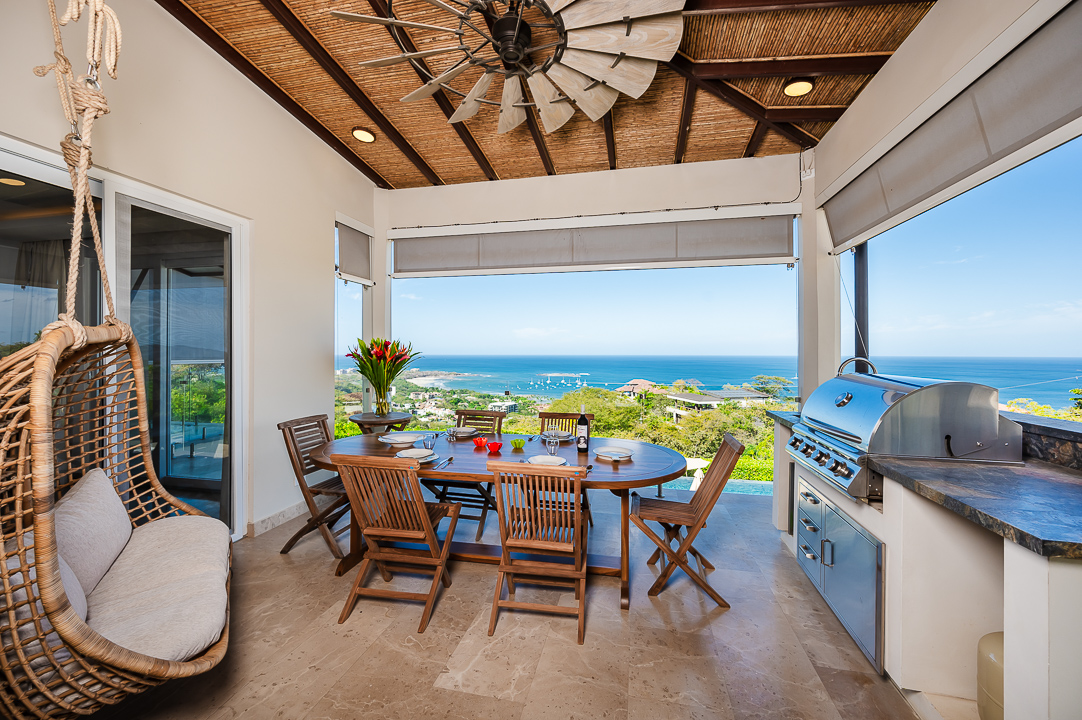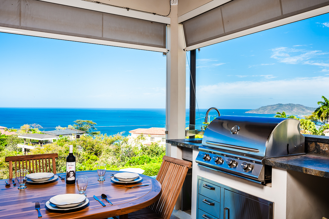 La Vista is a condo complex nestled in the heart of Tamarindo Bay and just a short drive to downtown. This 3 bedroom, 3 bathroom condo is located on the second floor with breathtaking views of the Pacific Ocean. The kitchen has a beautiful custom island with comfortable dining chairs. It is fully equipped with everything you need to prepare a fresh and delicious family meal. The spacious living room with large flat screen TV is perfect for relaxing while gazing out at the ocean through the glass patio doors. You can also relax on the private terrace and enjoy the breathtaking sunset while sipping on a cocktail or grilling on the large gas grill.