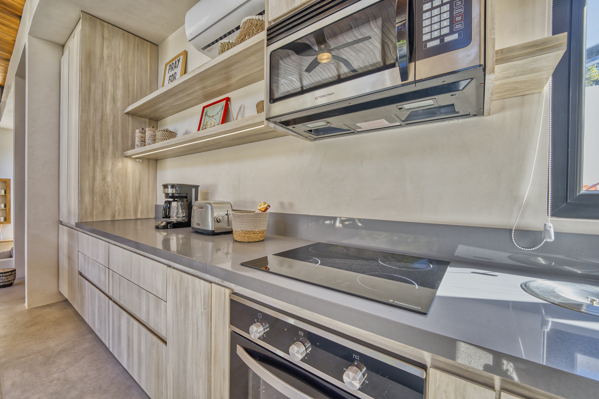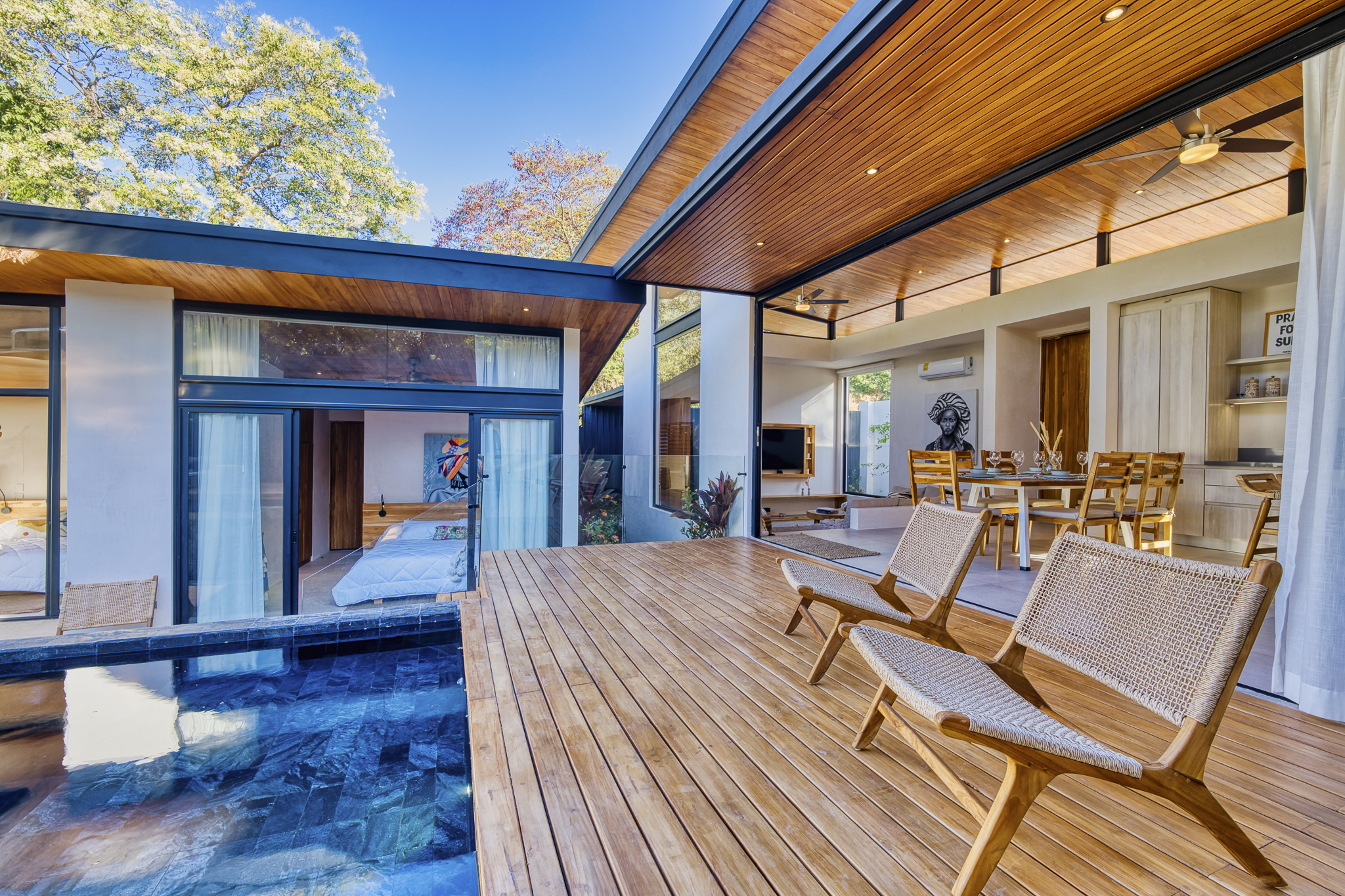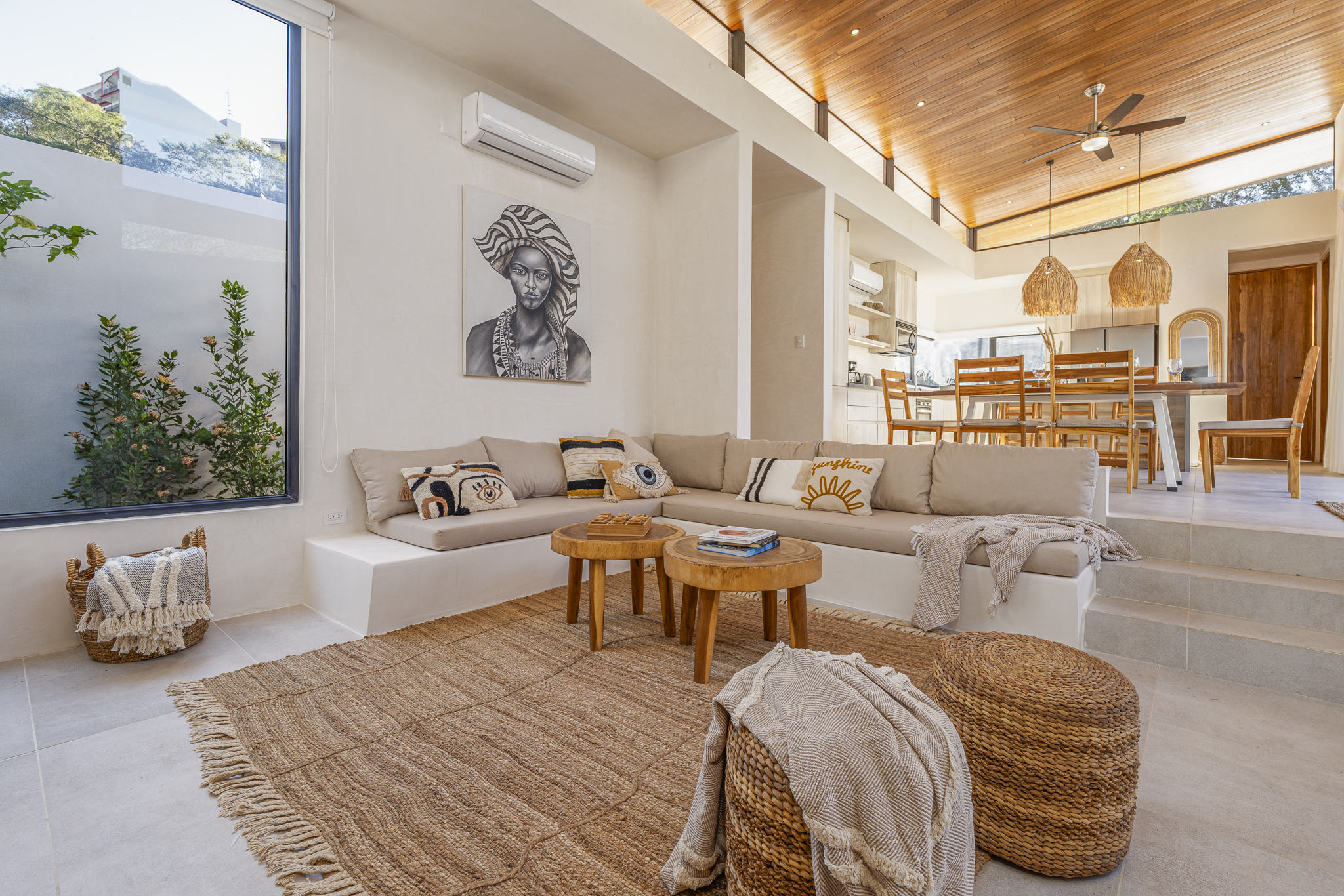 This brand new 3 bedroom, 3.5 bathroom luxury home is located on a quiet cul-de-sac in the heart of Tamarindo just a few minutes walk to restaurants, bars, shopping and beach. The open floor plan has floor to ceiling glass doors that seamlessly incorporate indoor/outdoor living leading to your private pool. The modern kitchen has all the amenities and a spacious dining and living area with a flat screen tv.