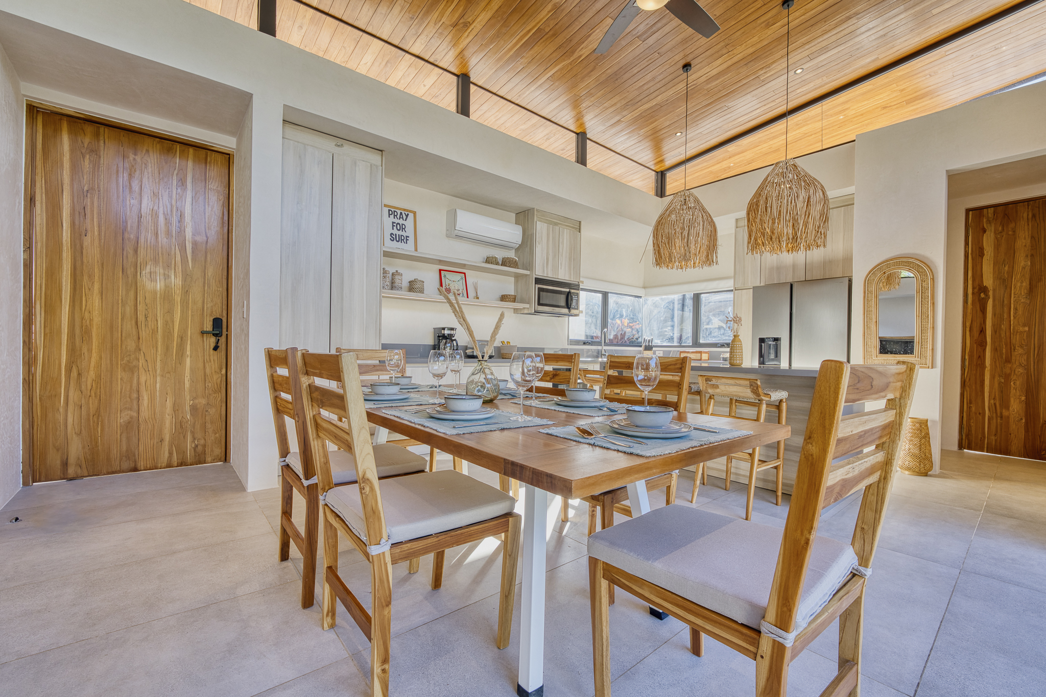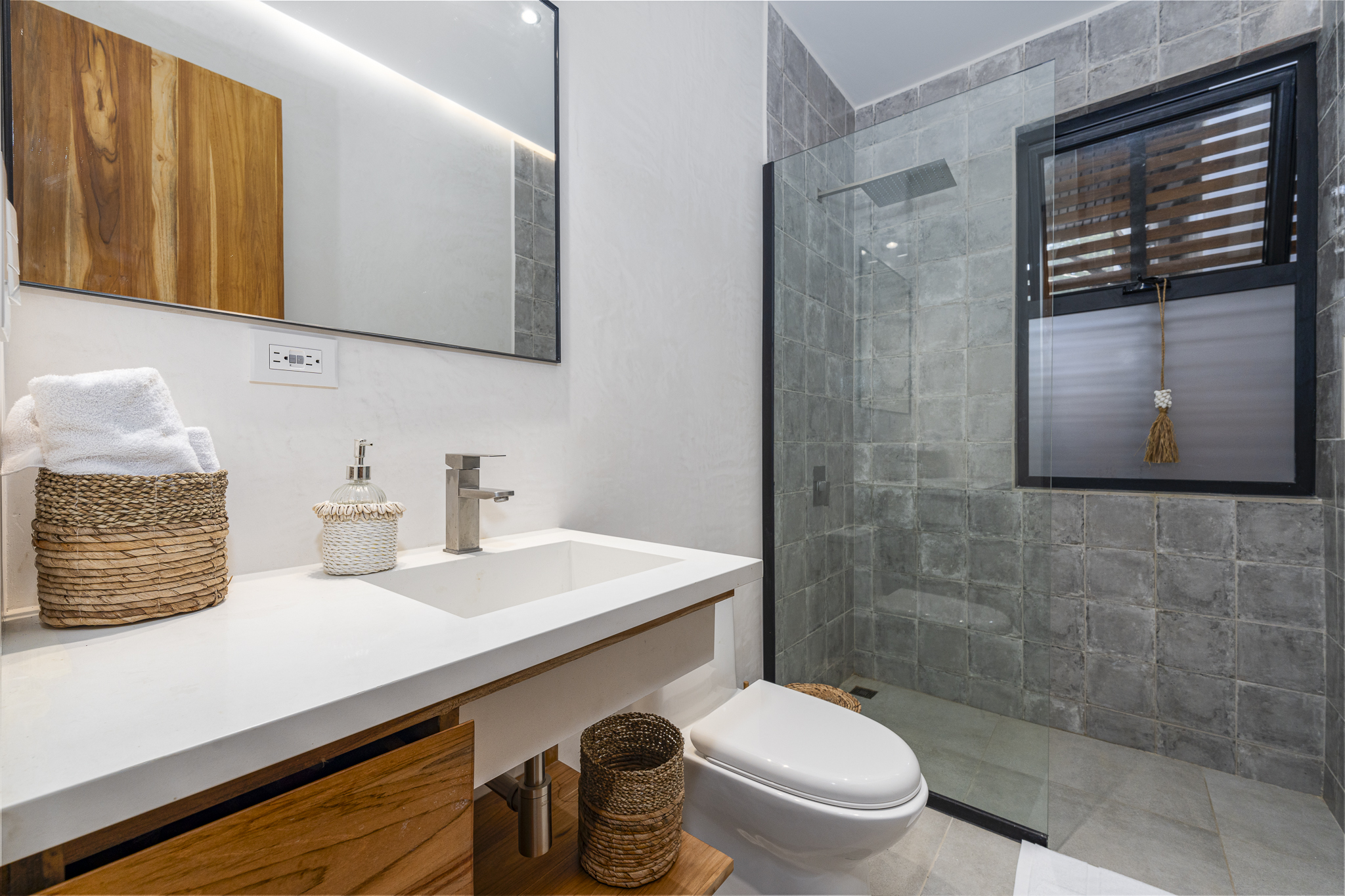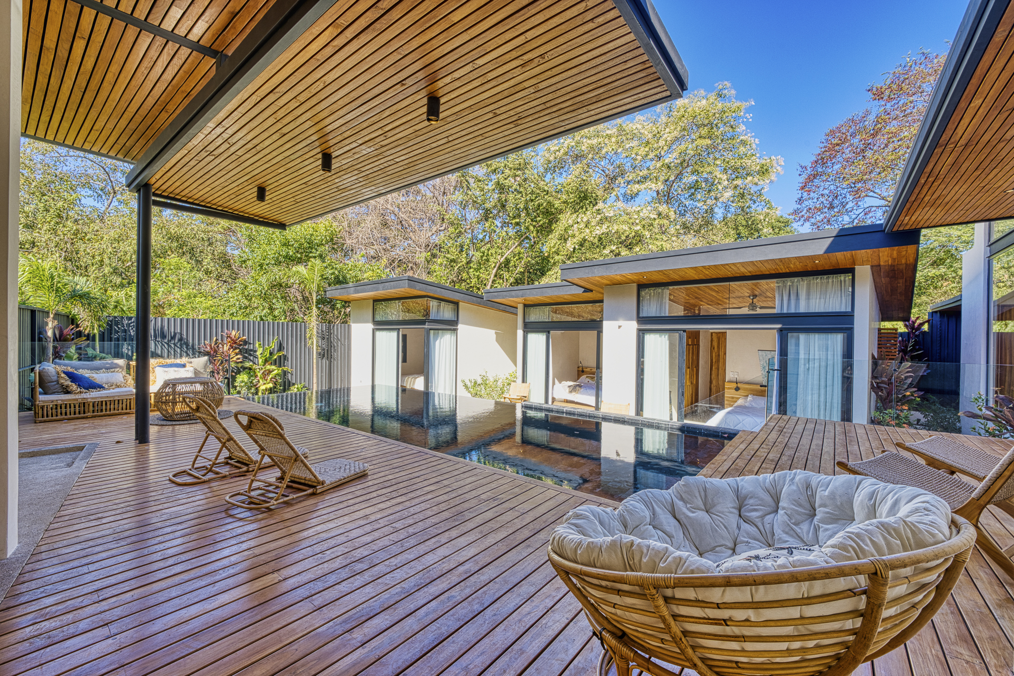 This brand new 3 bedroom, 3.5 bathroom luxury home is located on a quiet cul-de-sac in the heart of Tamarindo just a few minutes walk to restaurants, bars, shopping and beach. The open floor plan has floor to ceiling glass doors that seamlessly incorporate indoor/outdoor living leading to your private pool. The modern kitchen has all the amenities and a spacious dining and living area with a flat screen tv.