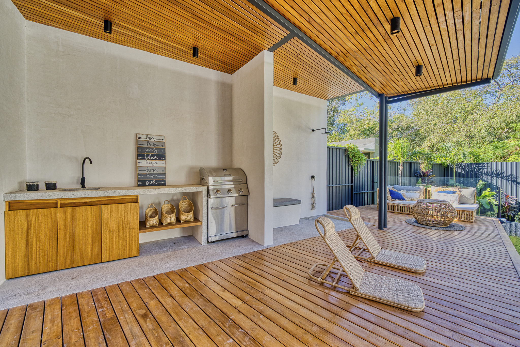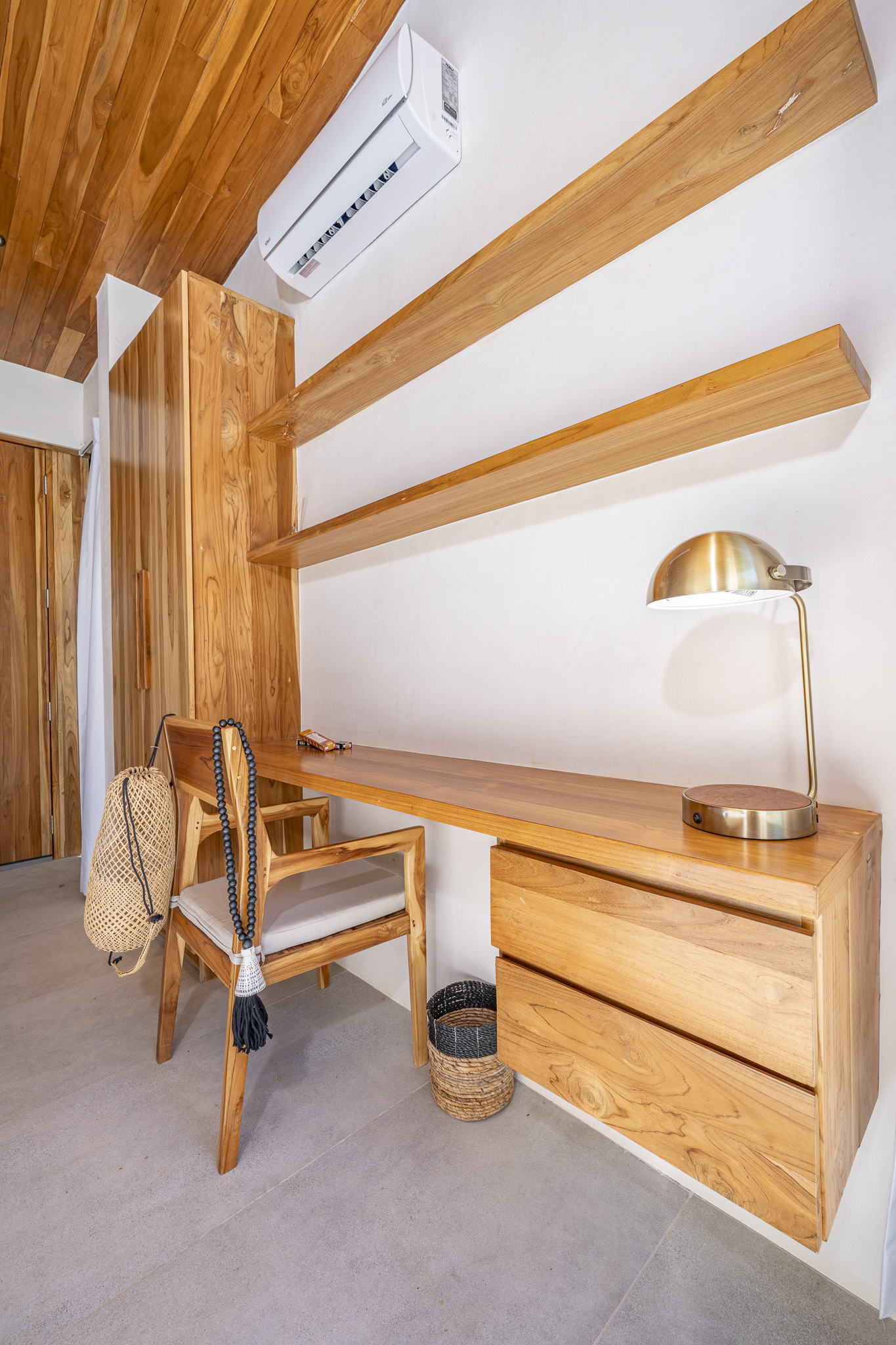 The private pool has a large teak deck with lounging and sitting areas and an outdoor BBQ where you can enjoy meals with family and friends. Each bedroom has a King sized bed with full en-suite bathroom. The mater bedroom and bathroom also has a secret garden with an outdoor tub. Each bedroom comes with a safe and ensuite bathrooms