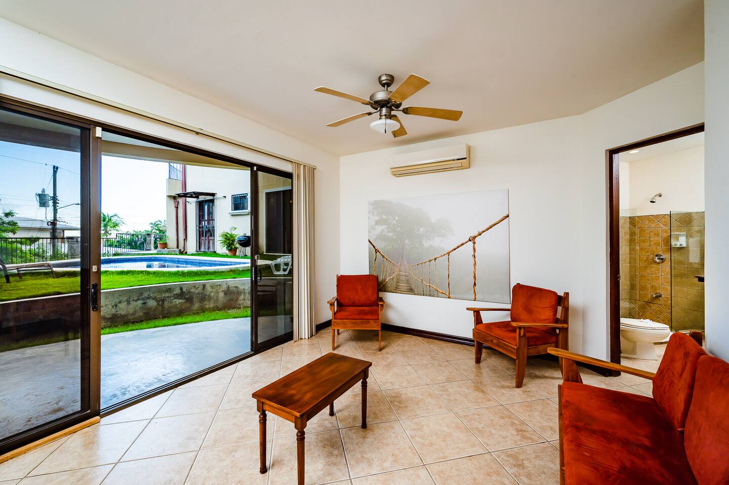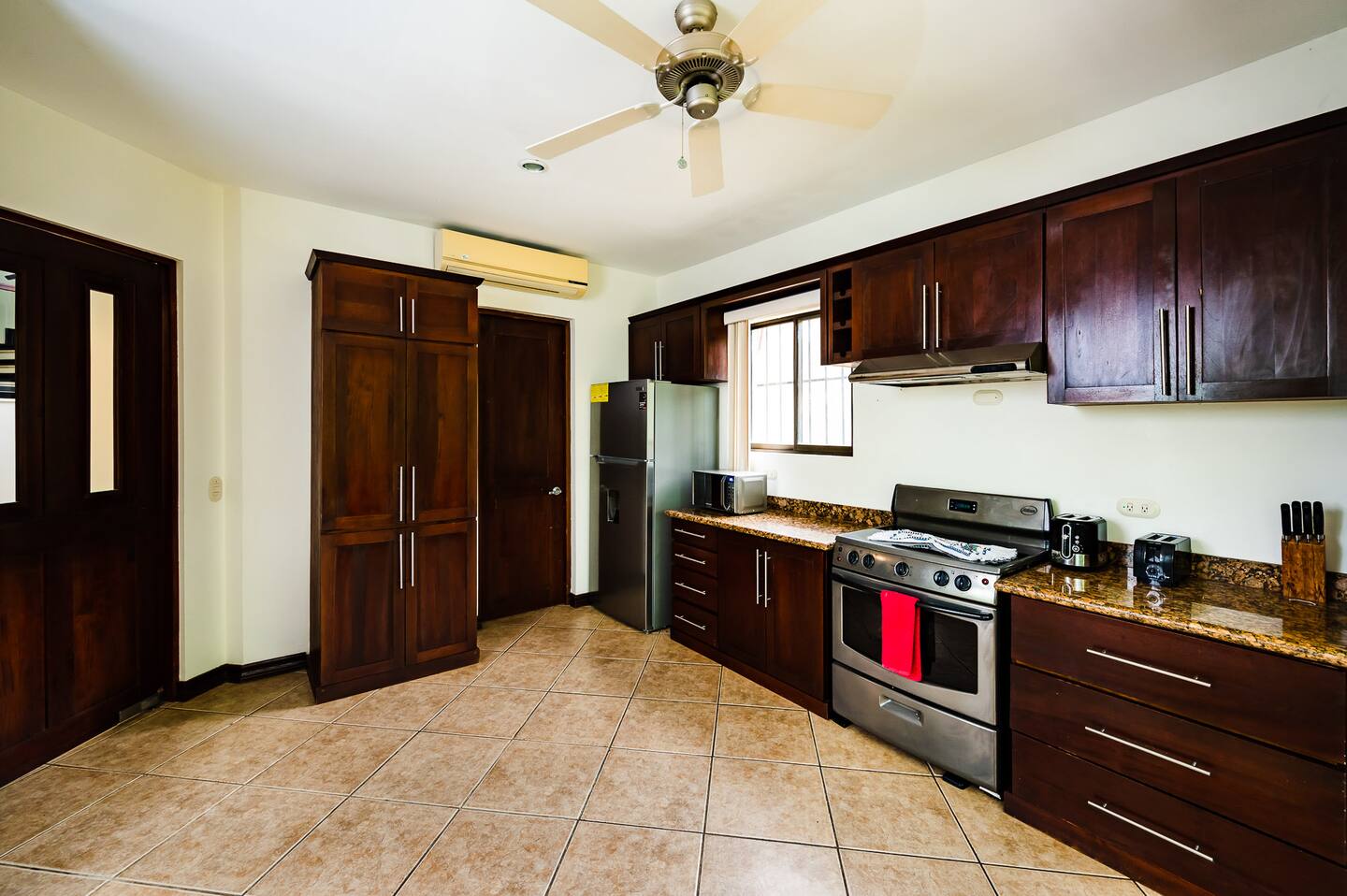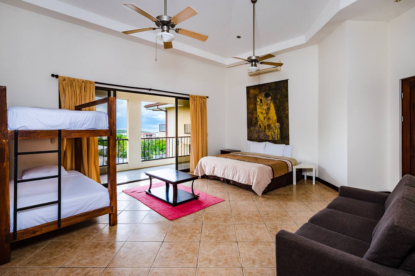 Casa “Lucky Monkey House 2” is located just a short 2 minute drive or 10 minute walk to the beach in Tamarindo, made famous by the classic surf flick “Endless Summer”. From the property perched on the hill above Tamarindo Bay, the ocean is visible beyond the seascape sunset. The ocean is visible beyond the trees even from the ground floor and the view from the higher floors looks out over Tamarindo bay and toward Langosta.