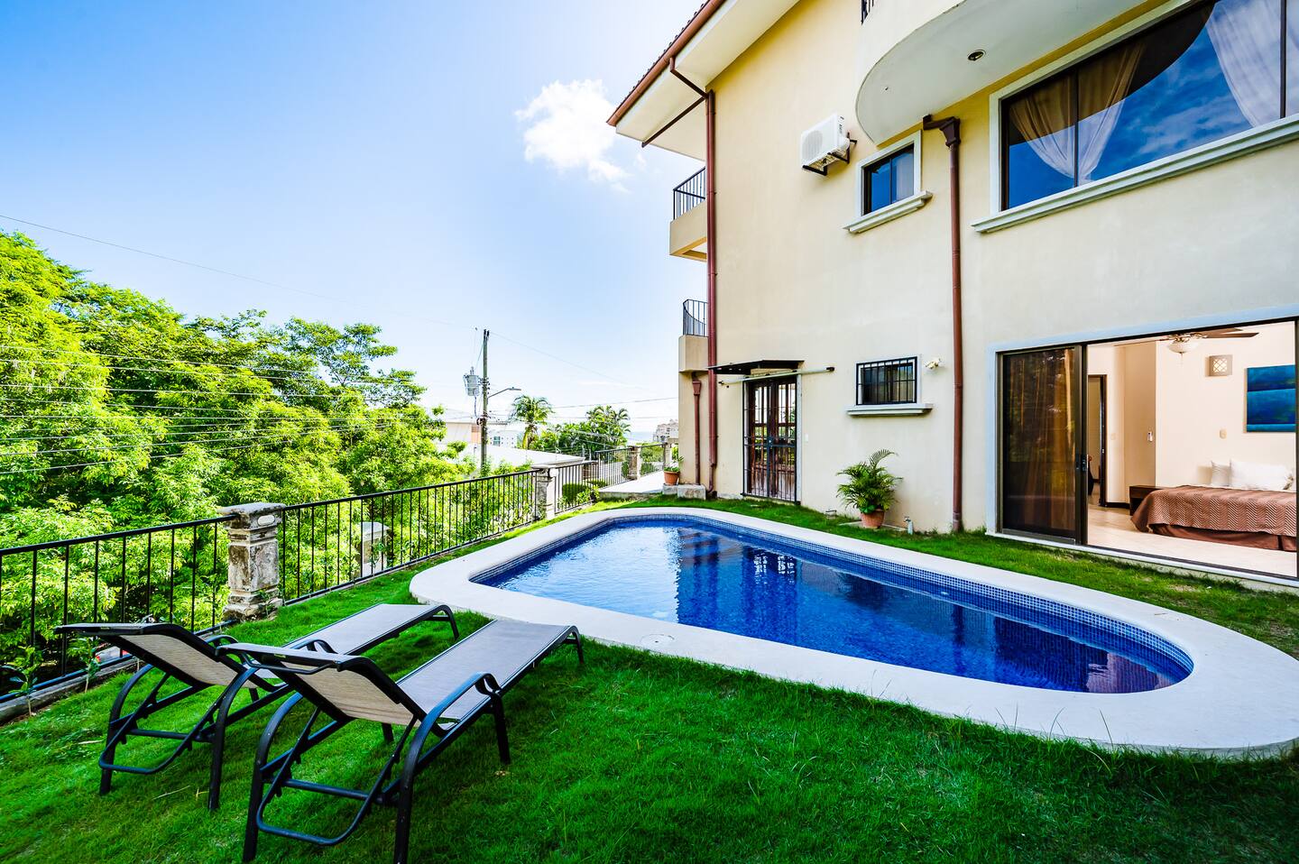 Casa "Lucky Monkey House 2" is located just a short 2 minute drive or 10 minute walk to the beach in Tamarindo, made famous by the classic surf flick "Endless Summer". From the property perched on the hill above Tamarindo Bay, the ocean is visible beyond the seascape sunset. The ocean is visible beyond the trees even from the ground floor and the view from the higher floors looks out over Tamarindo bay and toward Langosta.