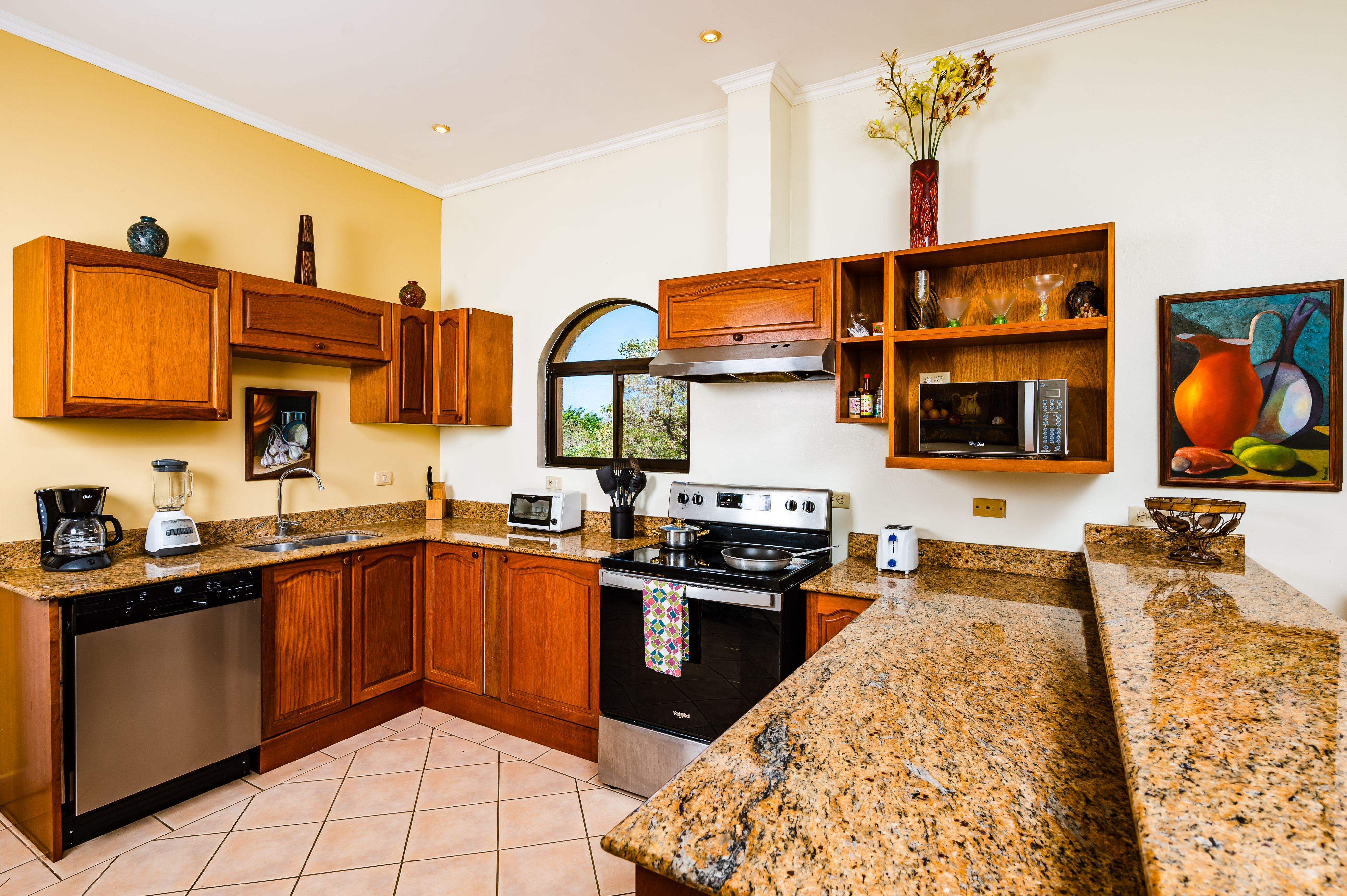The complex is called sunrise, but the sun rises early here so you could watch the sunset instead, from your beautiful balcony. You have a partial ocean view and you can take in the breath-taking sunsets Tamarindo has to offer while siting of the outdoor couch or at the six person table. You could even enjoy the sunsets while cooking dinner with the table top grill that is outside on your balcony.