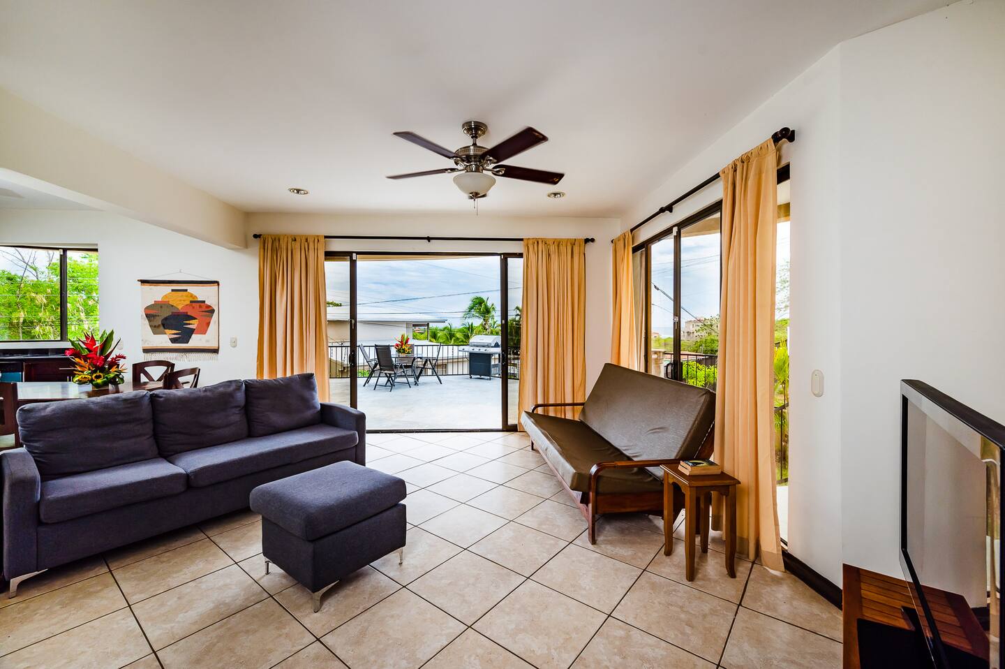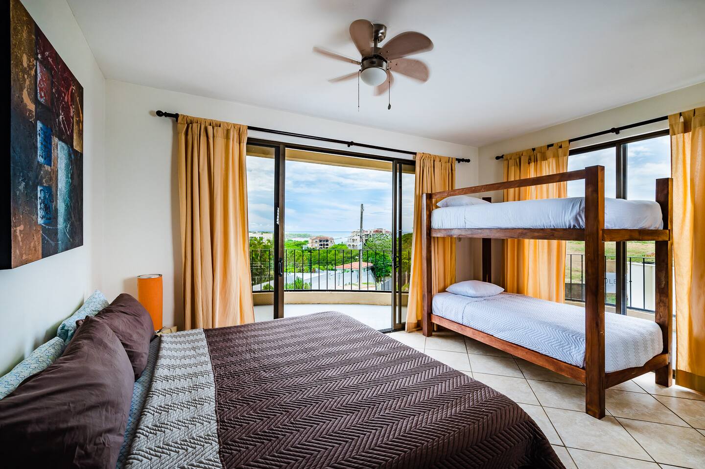 Casa "Lucky Monkey House 1" is located just a short 2-minute drive or 10-minute walk to the beach in Tamarindo, made famous by the classic surf flick "Endless Summer". From the property perched on the hill above Tamarindo Bay, the ocean is visible beyond the seascape sunset. The ocean is visible beyond the trees even from the ground floor and the view from the higher floors has up to a 220-degree panoramic view of Playa Grande, the Estuary, Tamarindo bay, and even all the way to Pinilla.