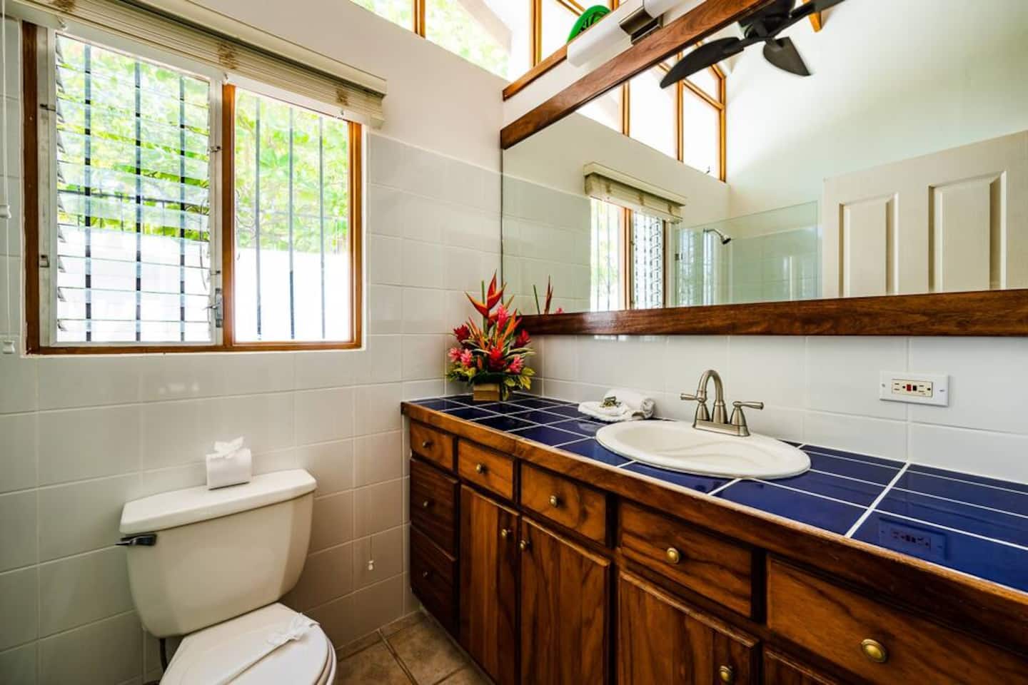The villa has two bedrooms: the master suite with a California king bed and adjoining bathroom, and an additional bedroom with a twin/queen-sized bunk bed that is just across the hall from the newly renovated second bathroom.