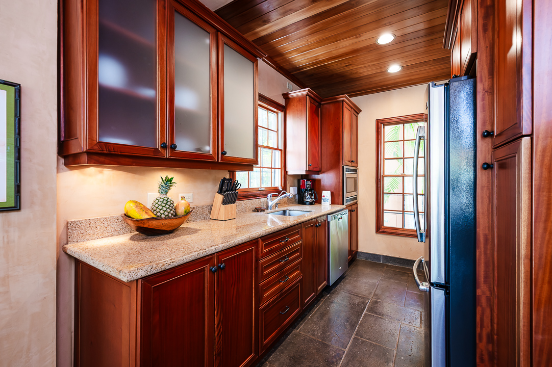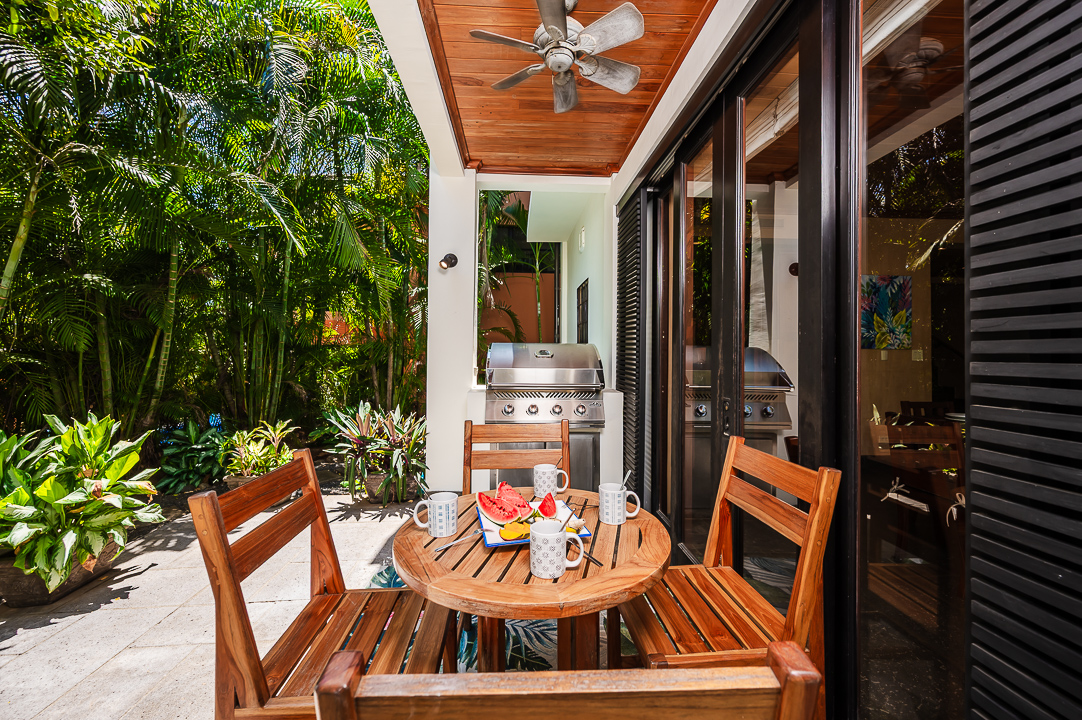 This beautiful home has an open concept floor plan with lots of natural light and light ocean breeze. On the first floor you will find a relaxing living room which opens up to the private pool area. Enjoy a fully equipped kitchen and dining room, as well as a half bathroom. On the second floor there are 2 bedrooms, each with their own ensuite bathroom. The master bedroom has a king-sized bed and the second bedroom has a queen bed with trundle. Each bedroom also has its own private balcony overlooking the lush tropical gardens. The outdoor pool area has a patio with dining table and BBQ for making a delicious home cooked meal. Relax by the pool on the lounge chairs or take a dip in the pool to cool off!