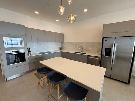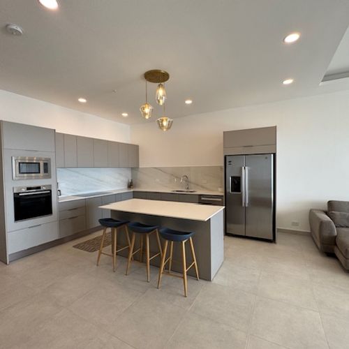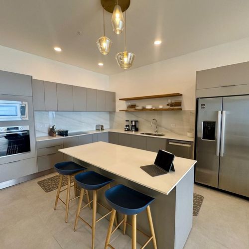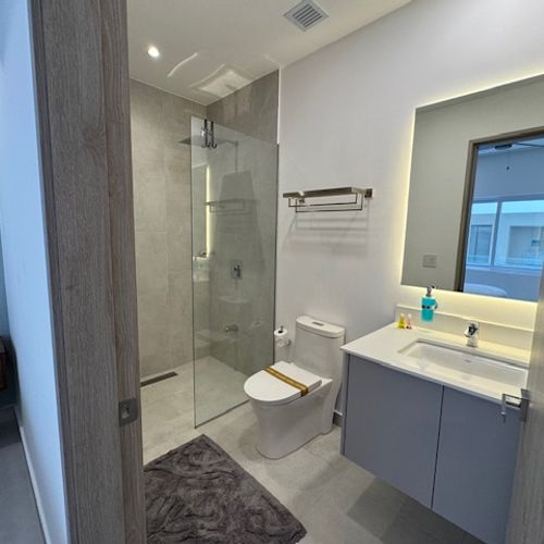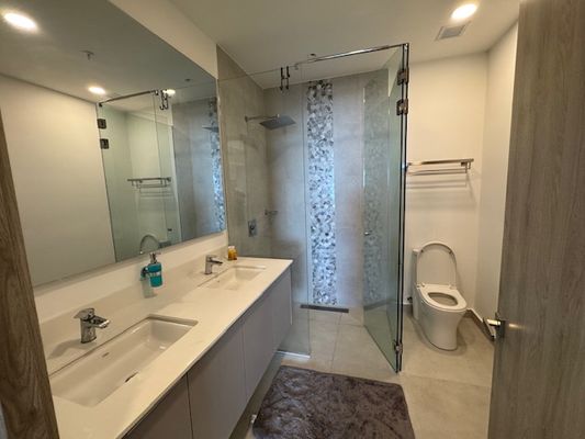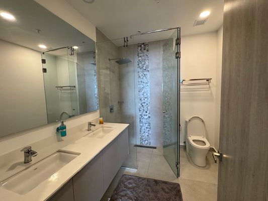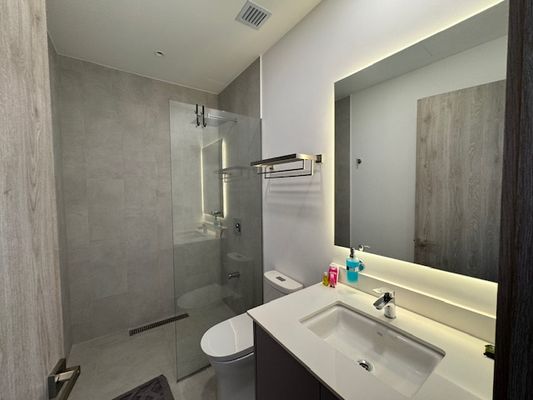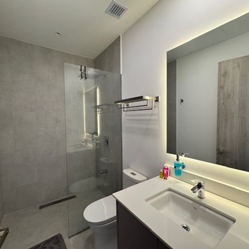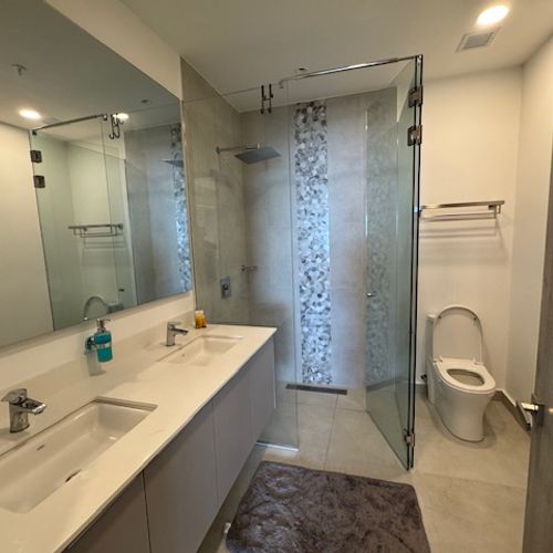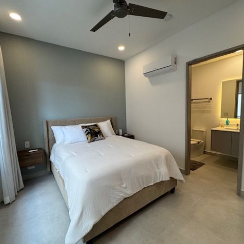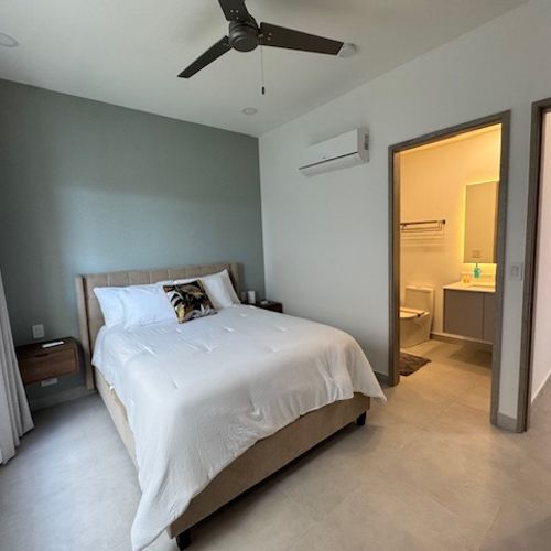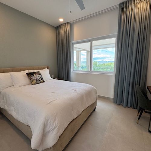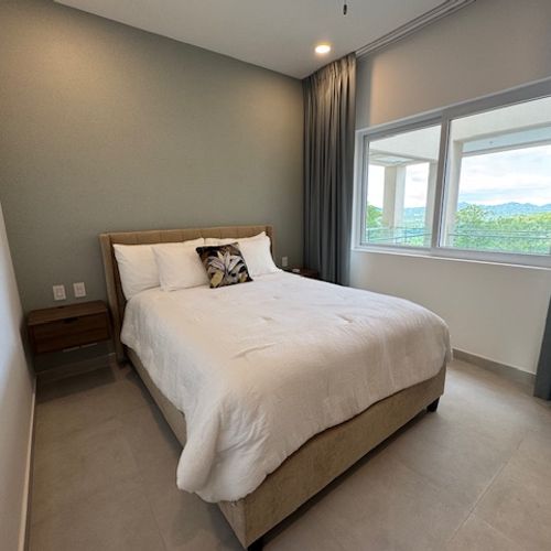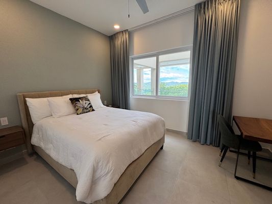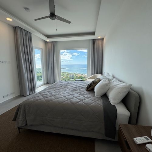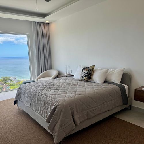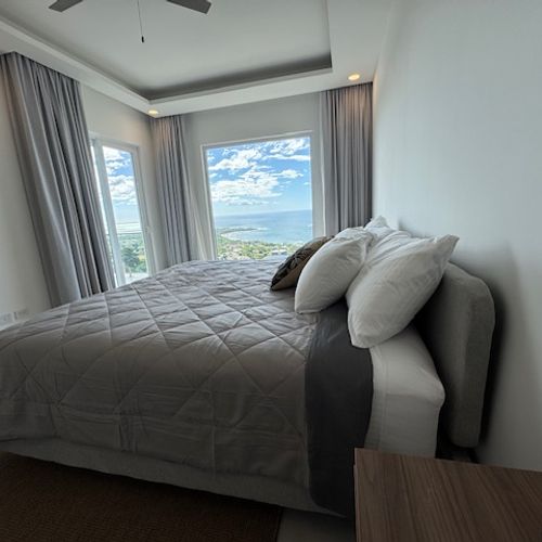 The master bedroom has a king-sized bed, walk in closet, in suite bathroom and access to the patio with amazing views. The second bedroom has a queen-sized bed and in suite bathroom. The third bedroom has a queen-sized bed. All beds have brand new mattresses and luxury linens.