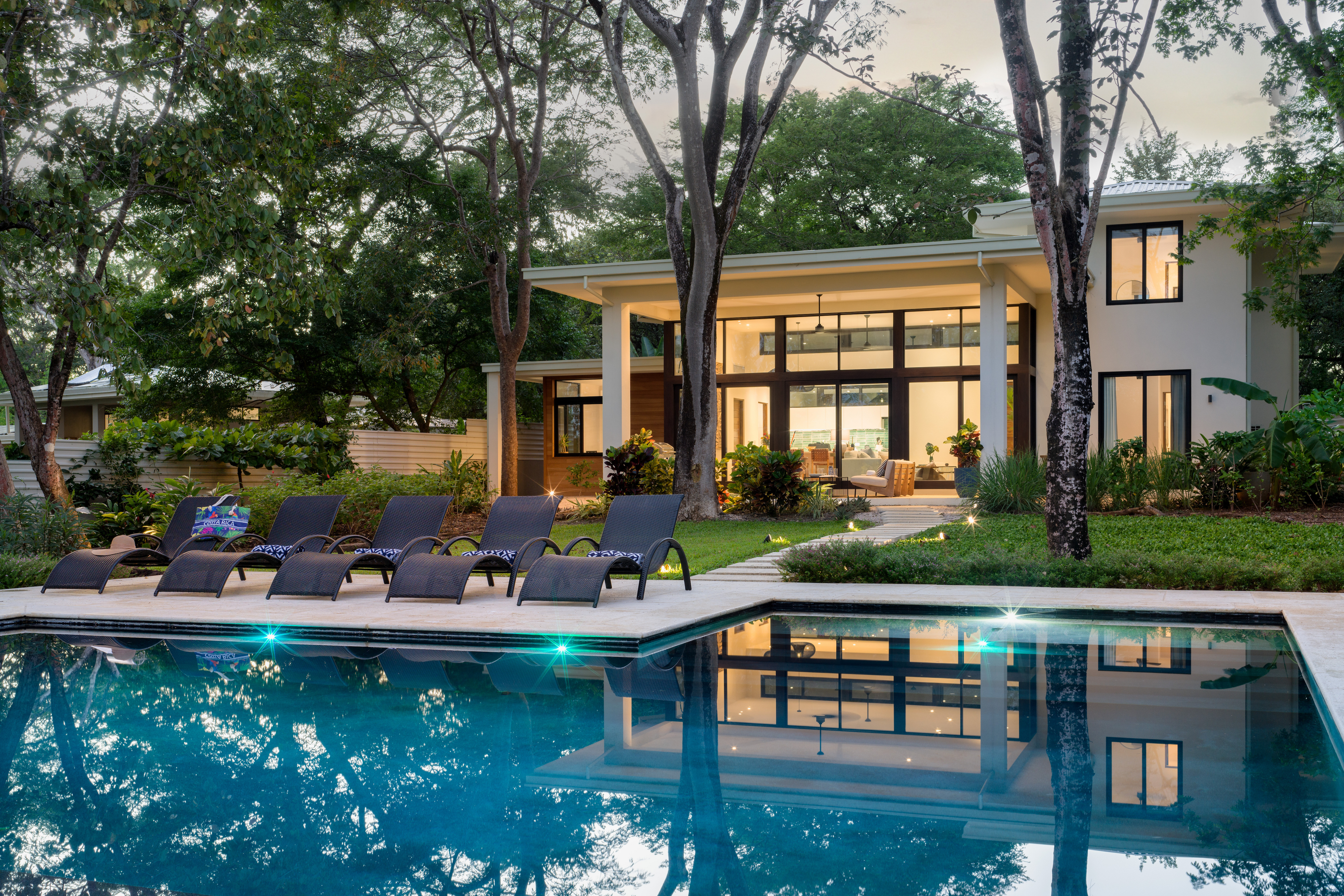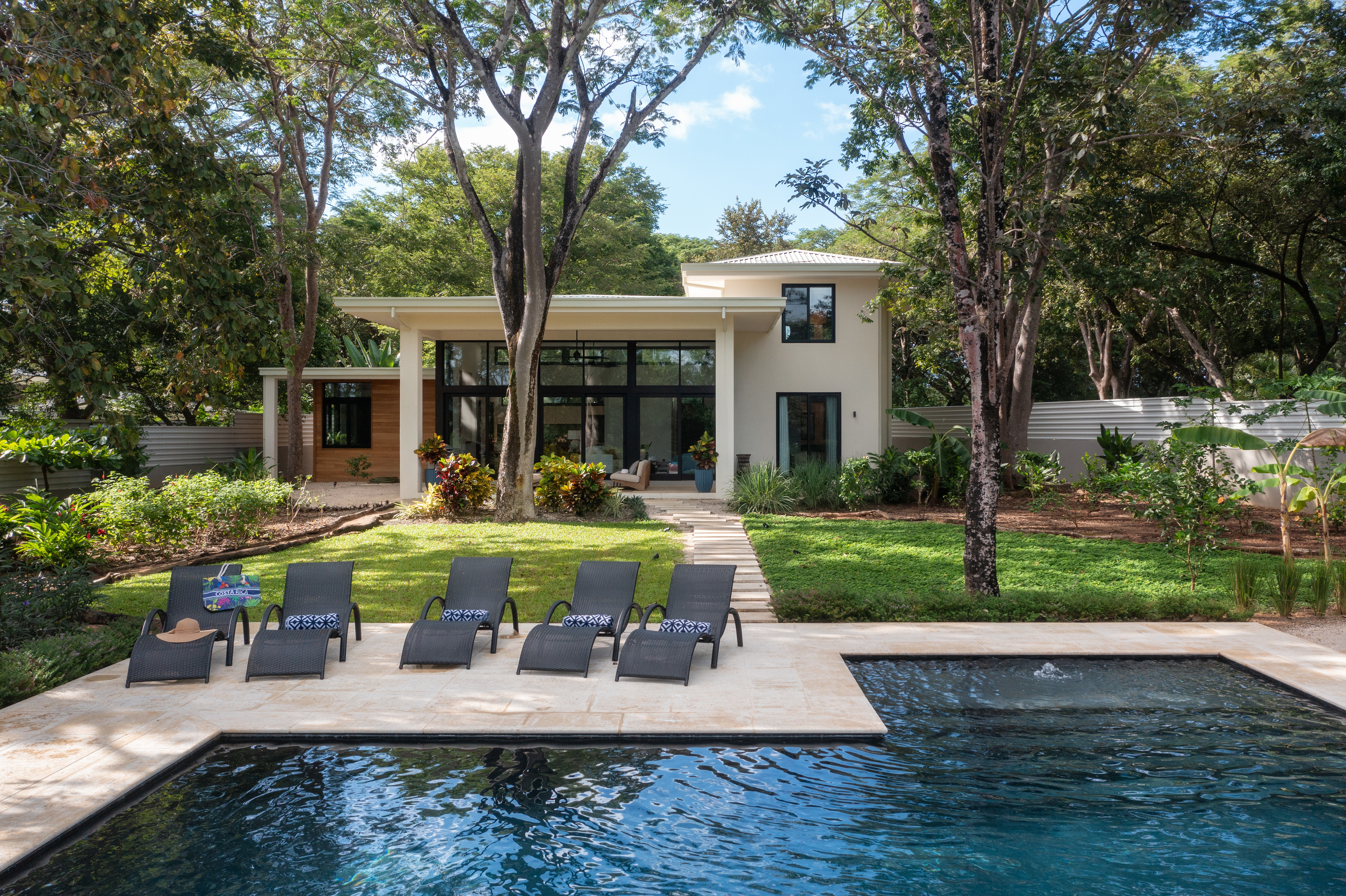 Step outside and take a refreshing dip in the private pool, surrounded by lush greenery and the soothing sounds of nature. Outdoor enthusiasts will delight in the expansive backyard, complete with a food forest and hummingbird gardens, where you can reconnect with the natural beauty of Costa Rica. Troops of monkeys, flocks of parrots, and other native birds visit the beautiful mature native trees.