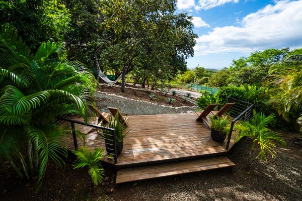 Nestled in the tropical dry forest, completely surrounded by nature and peace; this is the perfect place to disconnect and relax. Enjoy your private pool, yoga deck, wonderful gardens, and take a nap in a hammock or enjoy a walk through the beautiful custom designed labyrinth. Located 8 minutes from downtown Tamarindo in the quiet hills.