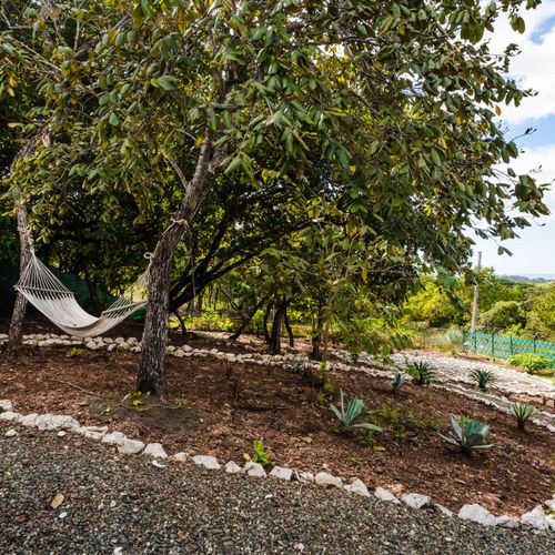 Outside you will have a gated parking area for 2 vehicles with an outdoor shower to rinse off the sand from the beach. The large lot has many fruit-bearing trees like Mangoes, Papayas, and Cashews. Additionally, there is a yoga/sunset deck and a beautiful labyrinth to walk around and enjoy.
