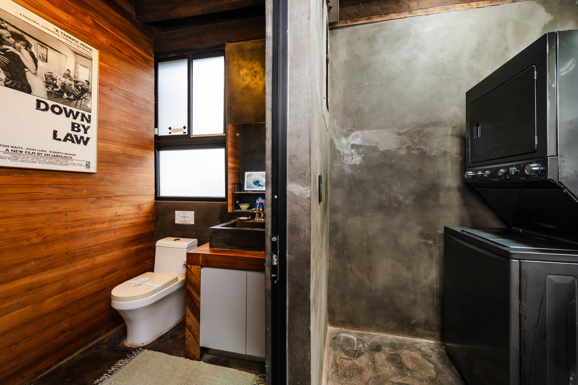 On the second floor, the master bedroom with views to the Pacific has lots of closet space with a personal safe that can be locked off for extra security. The in-suite bathroom has a large shower with a secondary detachable showerhead and sandblasted windows that can be open to appreciate nature as you bathe.