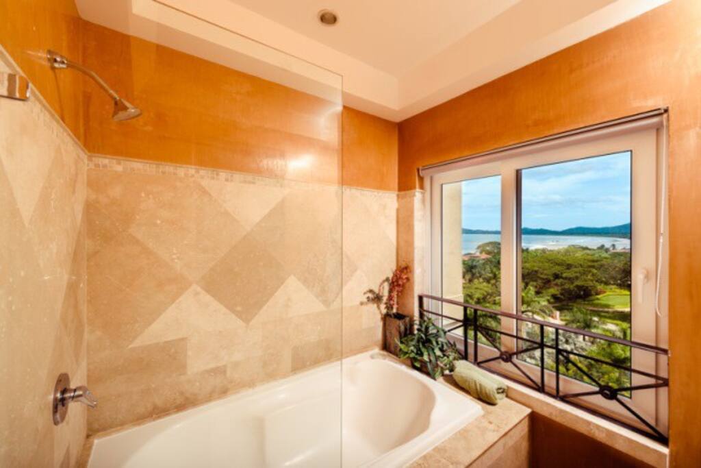 The condo has the light floating feeling of being in a dream. Cream-colored tile floors with round-pebble detail span the unit, spilling out of glass doors onto a patio that feels like it leads into thin air. The breathtaking view gives such a sensation of flying that you will find yourself reaching out for something to hold on to. Below lies an exotic tropical garden that surrounds the large free-form pool. In the near distance, Tamarindo beach, lined by royal palms stretches to meet the La Baula Estuary and National Park. The scene fades away in the distance as sky and sea melt into a kaleidoscope of clouds.