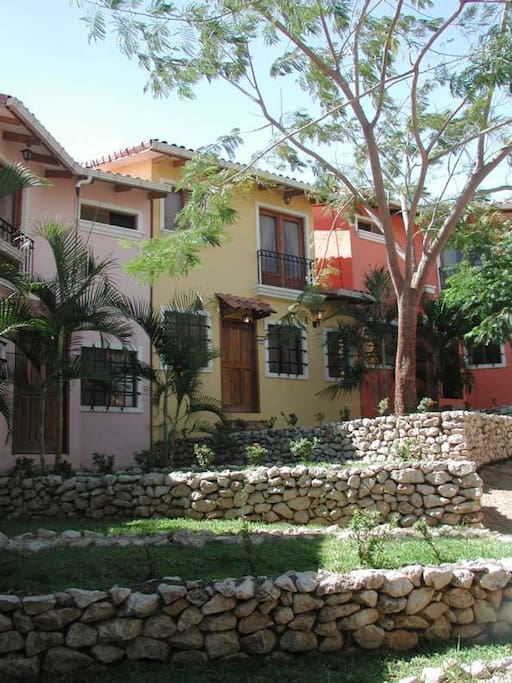 With small Mediterranean Village flavor, this lovely project is nestled within a quiet residential area of Tamarindo, just a 10 minute walk to the beach and downtown. This one and two bedroom condos are comfortably furnished and with swimming pool, cable TV, A/C in the bedrooms, maid service, and more. You can enjoy the amenities of more expensive properties without the price tag.