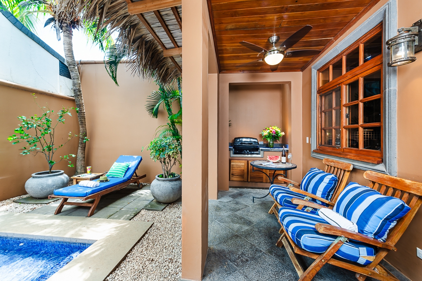Step outside to discover your own private tropical paradise. The highlight of this property is the beautiful outdoor area featuring a sparkling private pool surrounded by lush greenery. Lounge on comfortable sunbeds, take a refreshing dip, or sip your morning coffee on the shaded terrace – the choice is yours. There's also a barbecue grill for those delightful al fresco dining moments.