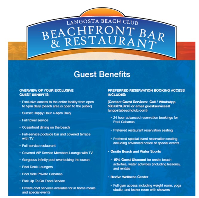 Guests will also have access to the Langosta Beach Club where you can enjoy beach front dining, large infinity pool, spa services and much more.