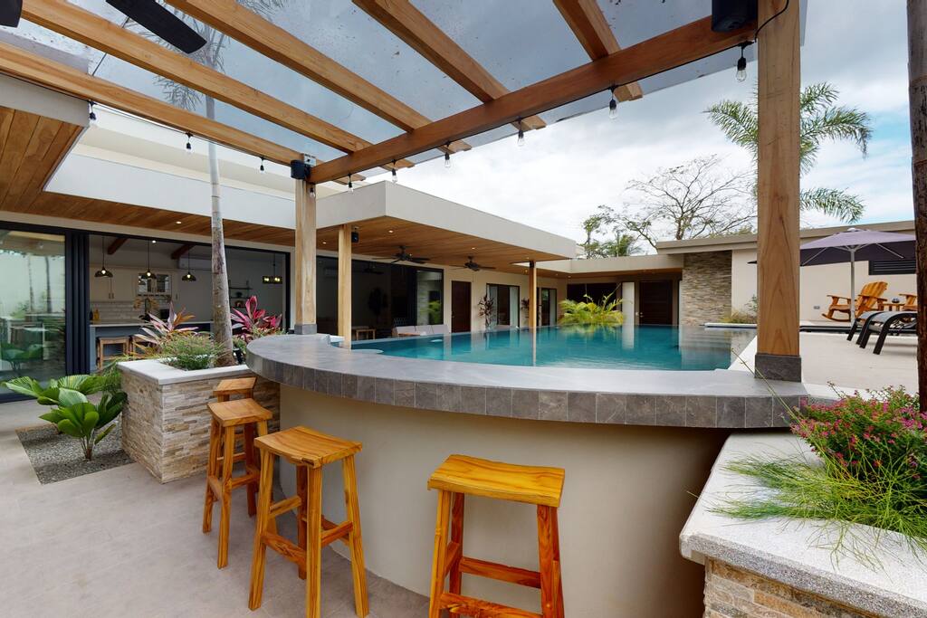 Enjoy cooking your fresh catch inside or outside by the BBQ area. With plenty of counter space and entertainment, the best restaurant in Tamarindo might just be what you cook up in this unbelievable home. Speaking of the outside, the pool and patio area will make it hard to want to leave the house. The pool offers a shallow deck area to relax while staying cool and then when you are thirsty, you can head over to the swim-up bar to enjoy your favorite cocktail.