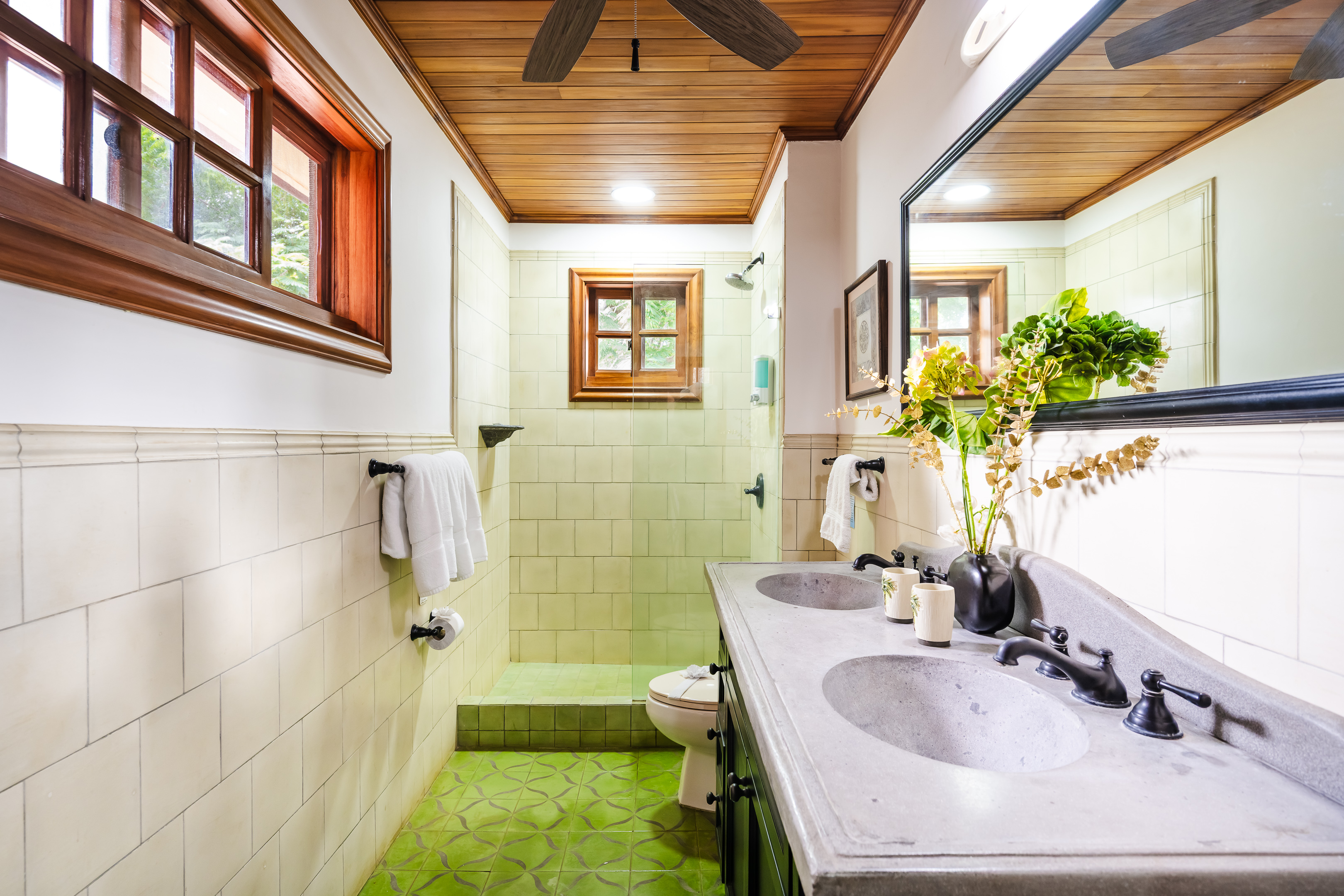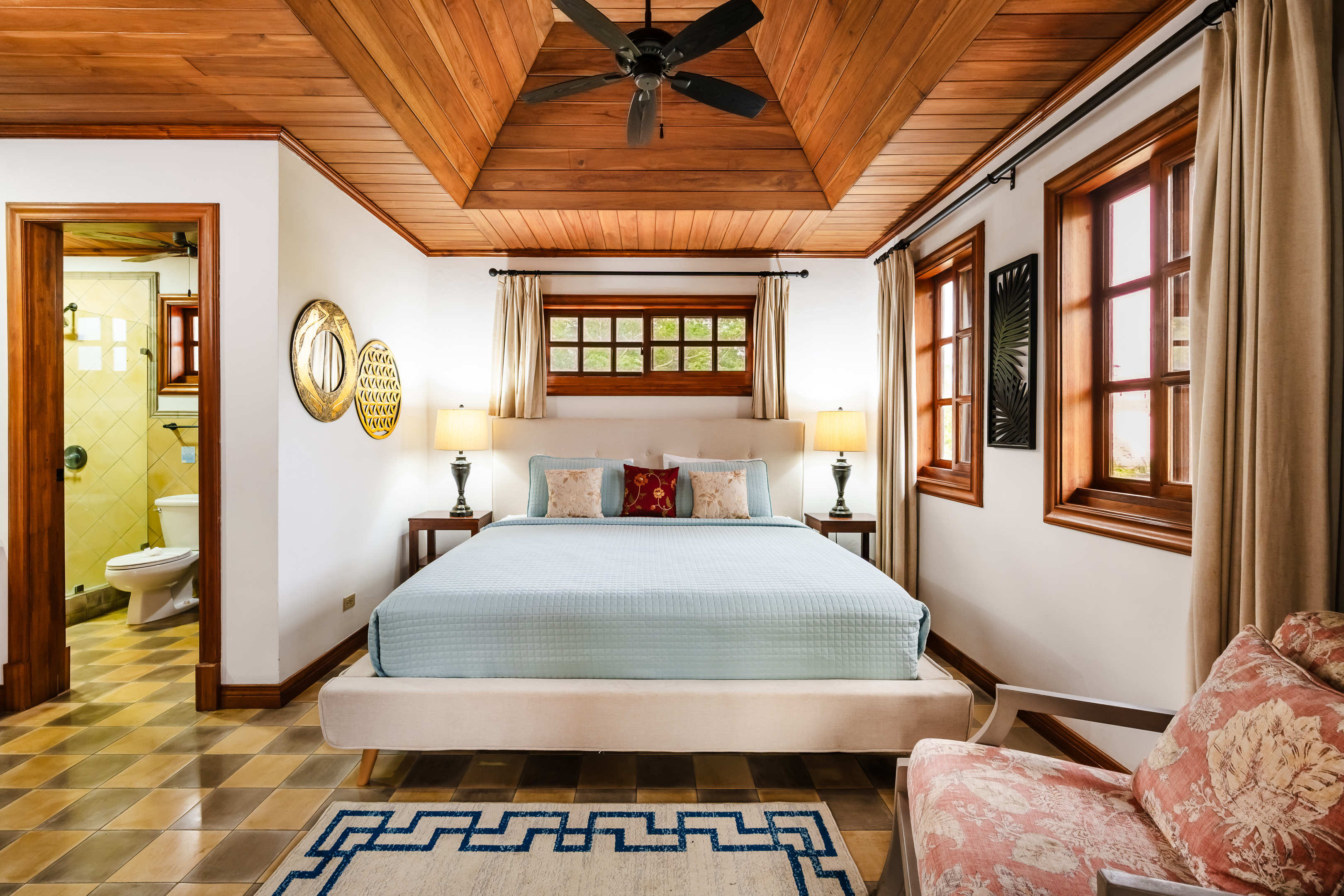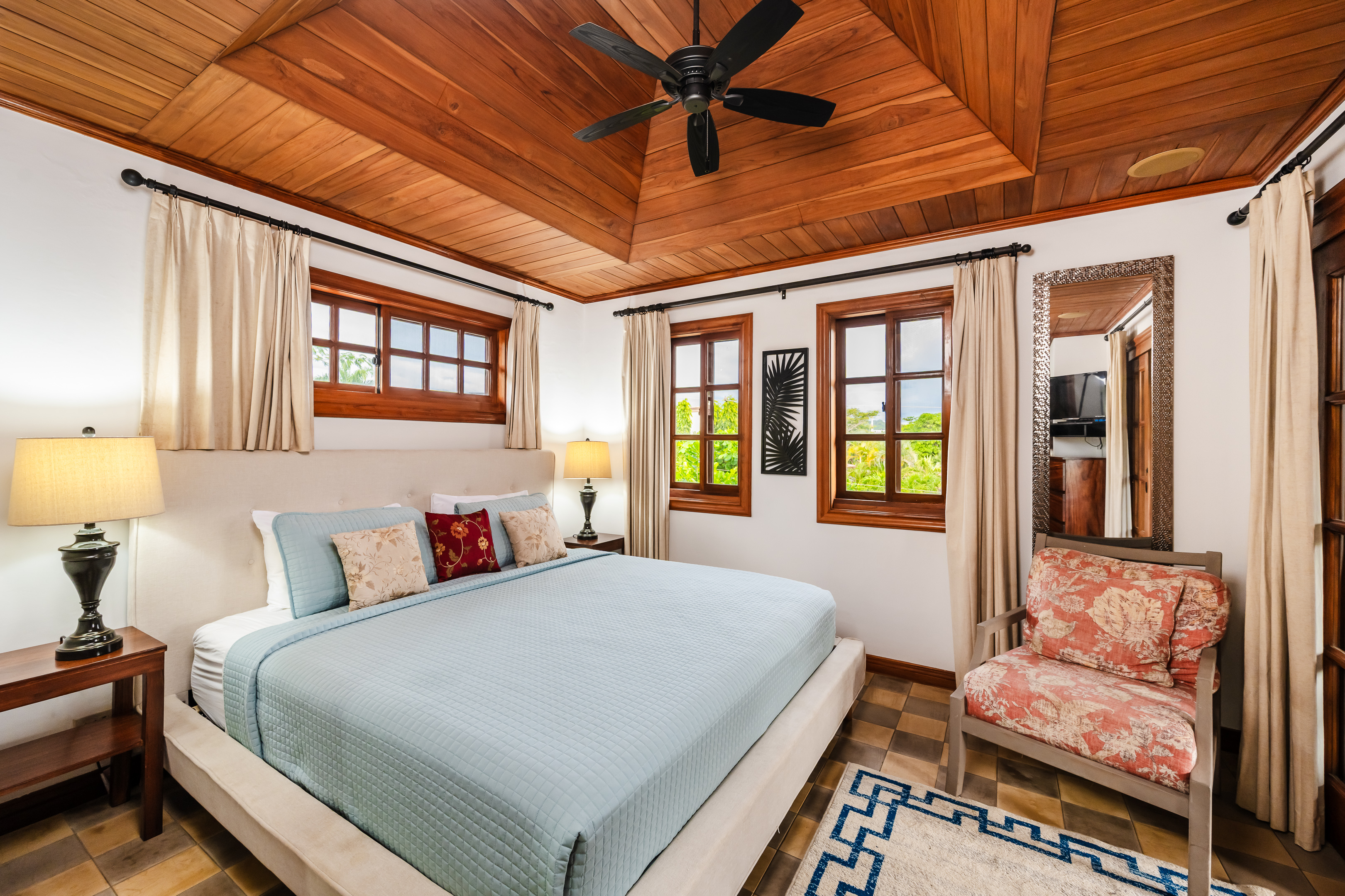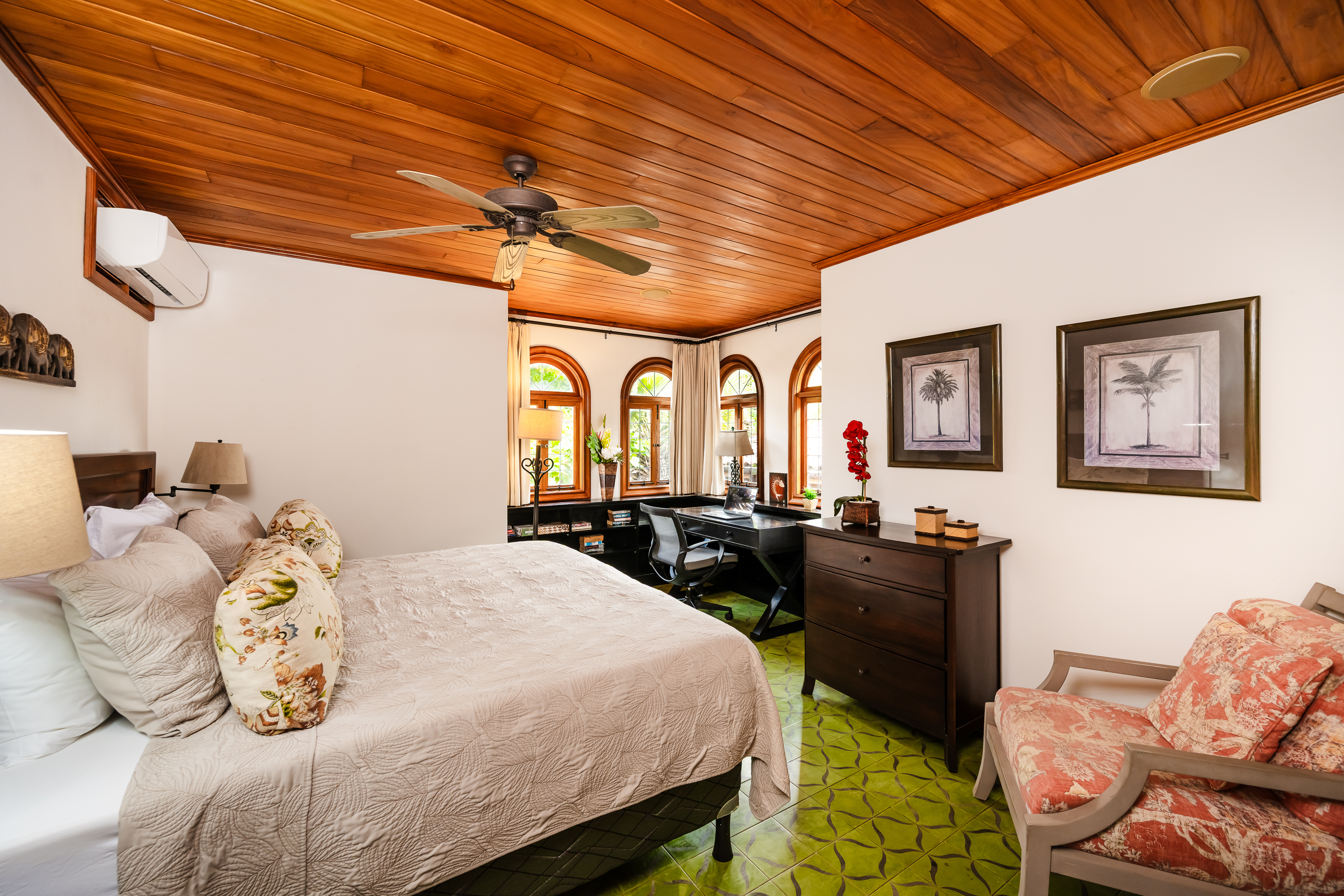 On the second level, the primary king bedroom boasts a private balcony to enjoy your morning coffee, and a second king bedroom features a small library and work space, and can be converted to twin beds. The third level features a queen bedroom with en suite bath and a beautiful open air sitting room perfect for enjoying afternoon breezes while sipping cocktails.