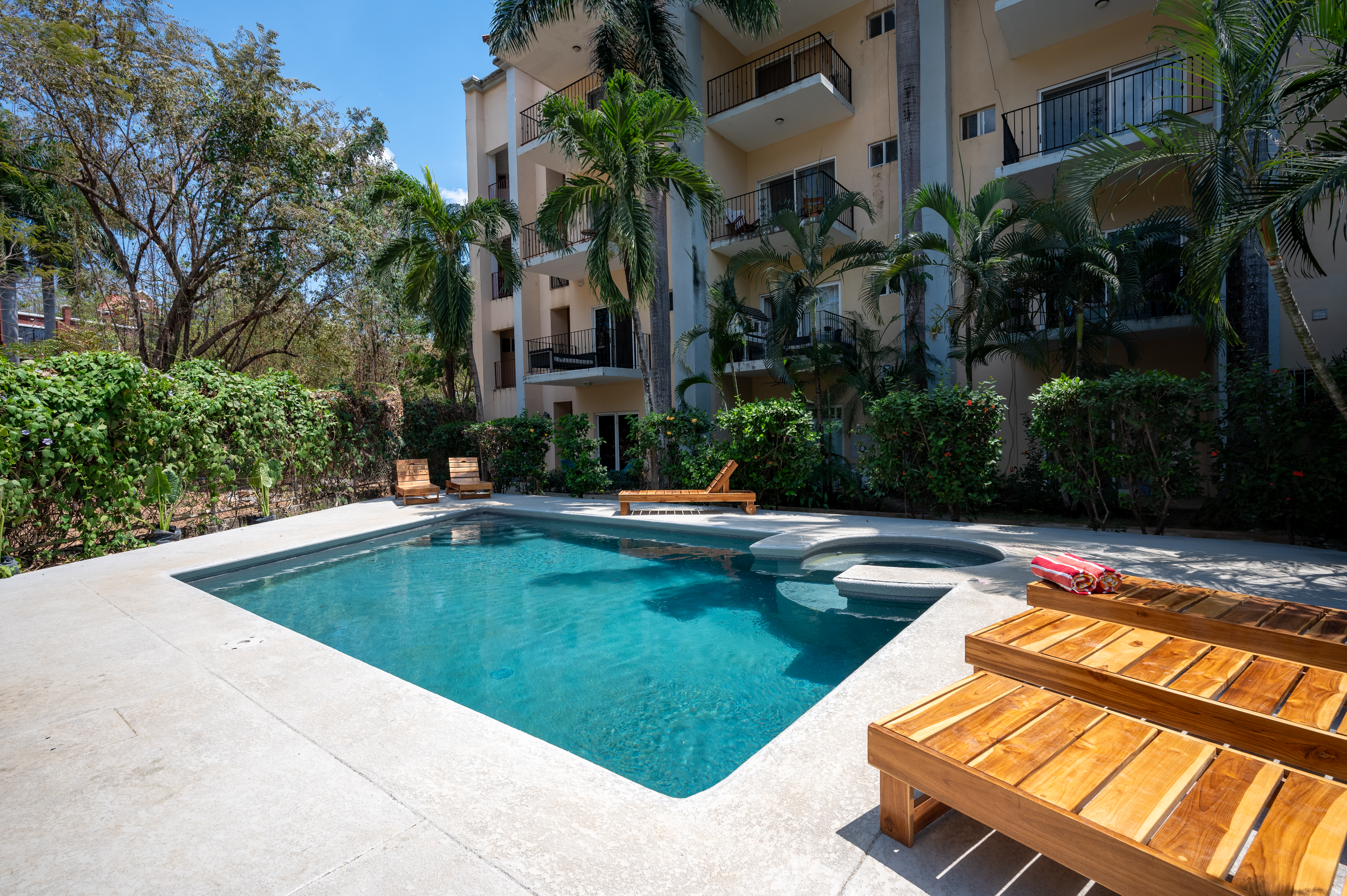 The recently renovated pool is very refreshing and surrounded by tropical hedges and plants, it has outside showers, and comfortable lounge chairs to lay back, catch some sun, and truly enjoy the Pura Vida lifestyle.